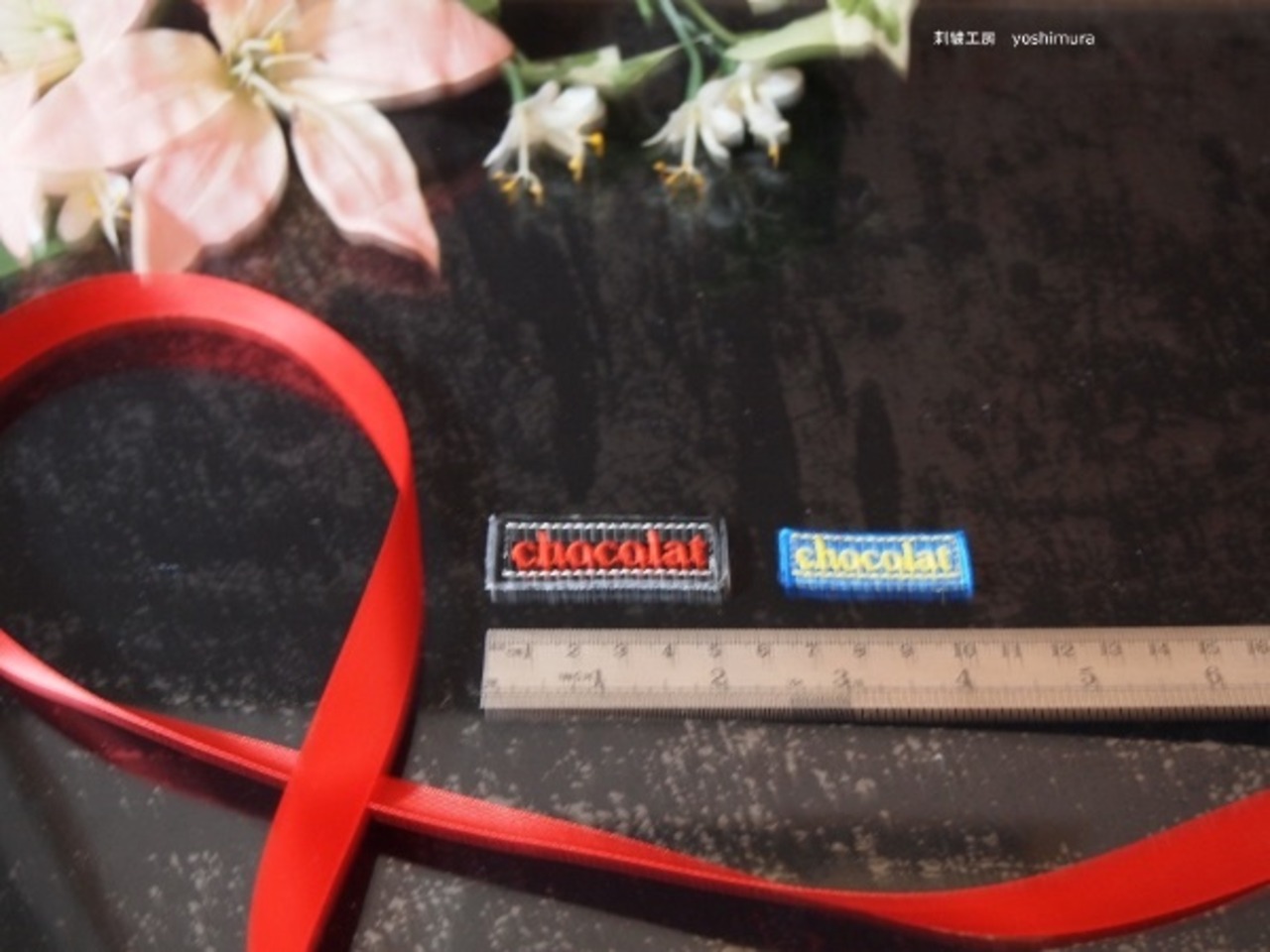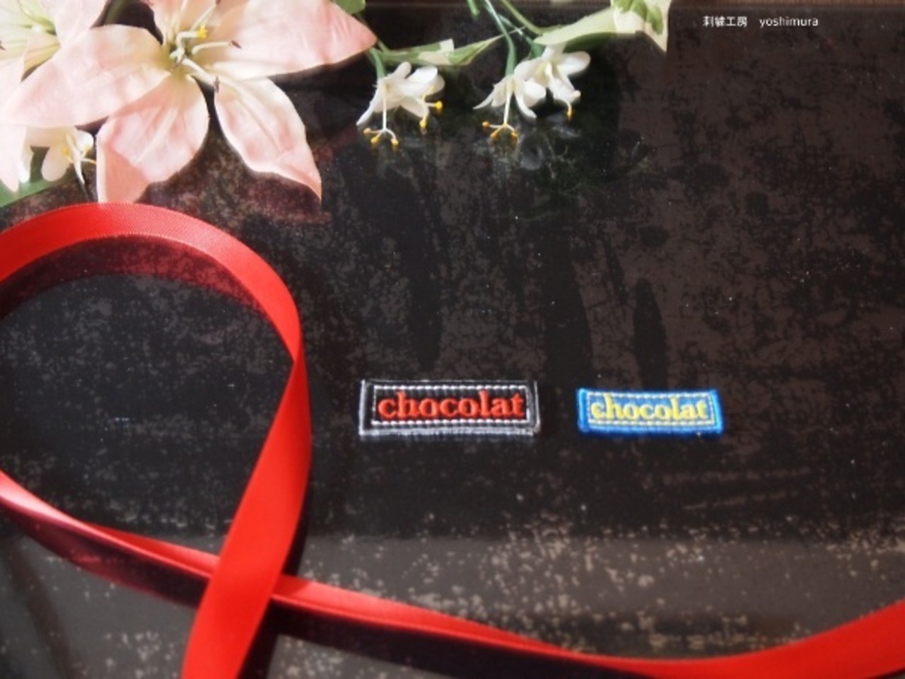 刺繍ワッペン アップリケ chocolat 2枚セット 中小 黒青