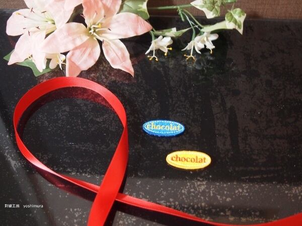 刺繍ワッペン アップリケ chocolat 2枚セット 楕円 黄青