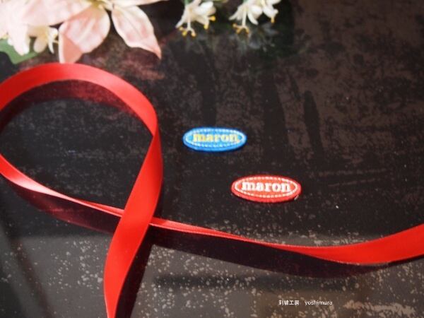 刺繍ワッペン アップリケ maron 2枚セット 楕円 赤青